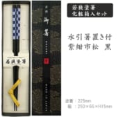 若狭塗箸 化粧箱入セット 水引箸置き付:紫紺市松 黒(木箸)