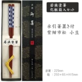 若狭塗箸 化粧箱入セット 水引箸置き付:紫紺市松 小豆(木箸)