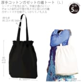 厚手コットンガゼット巾着トート(L):ネイビー