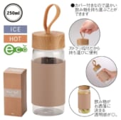 ウッドスタイル耐熱ガラスボトル(カバー付き)(グレージュ)