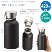 メタルハンドルサーモボトル420ml:ブラック