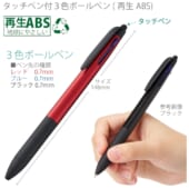 タッチペン付3色ボールペン(再生ABS):レッド