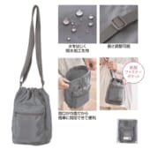 ファスナーポケット付きショルダー巾着ポーチ(撥水加工)(ブルーグレー)