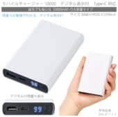 モバイルチャージャー10000 デジタル表示付:ホワイト
