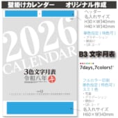 3色文字月表 十干十二支|定番 壁掛けカレンダー2026午年