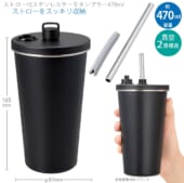 ストロー付ステンレスサーモタンブラー470ml:ブラック